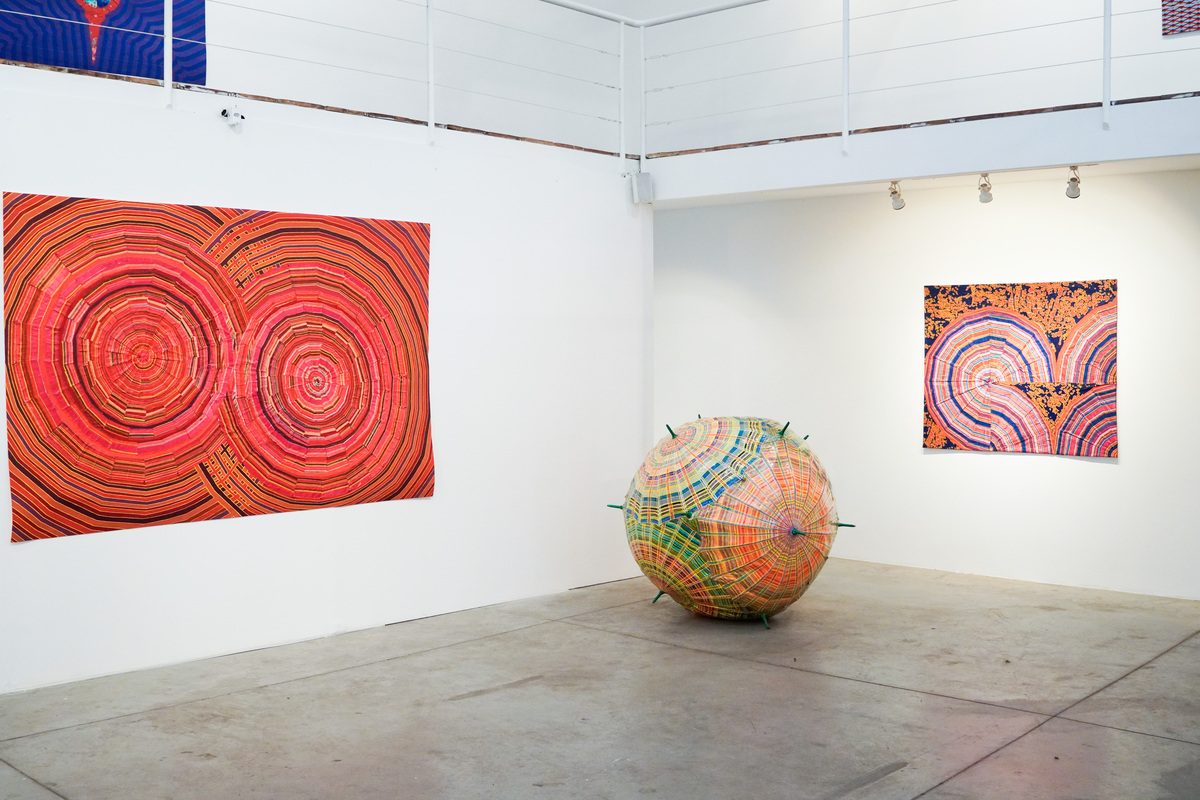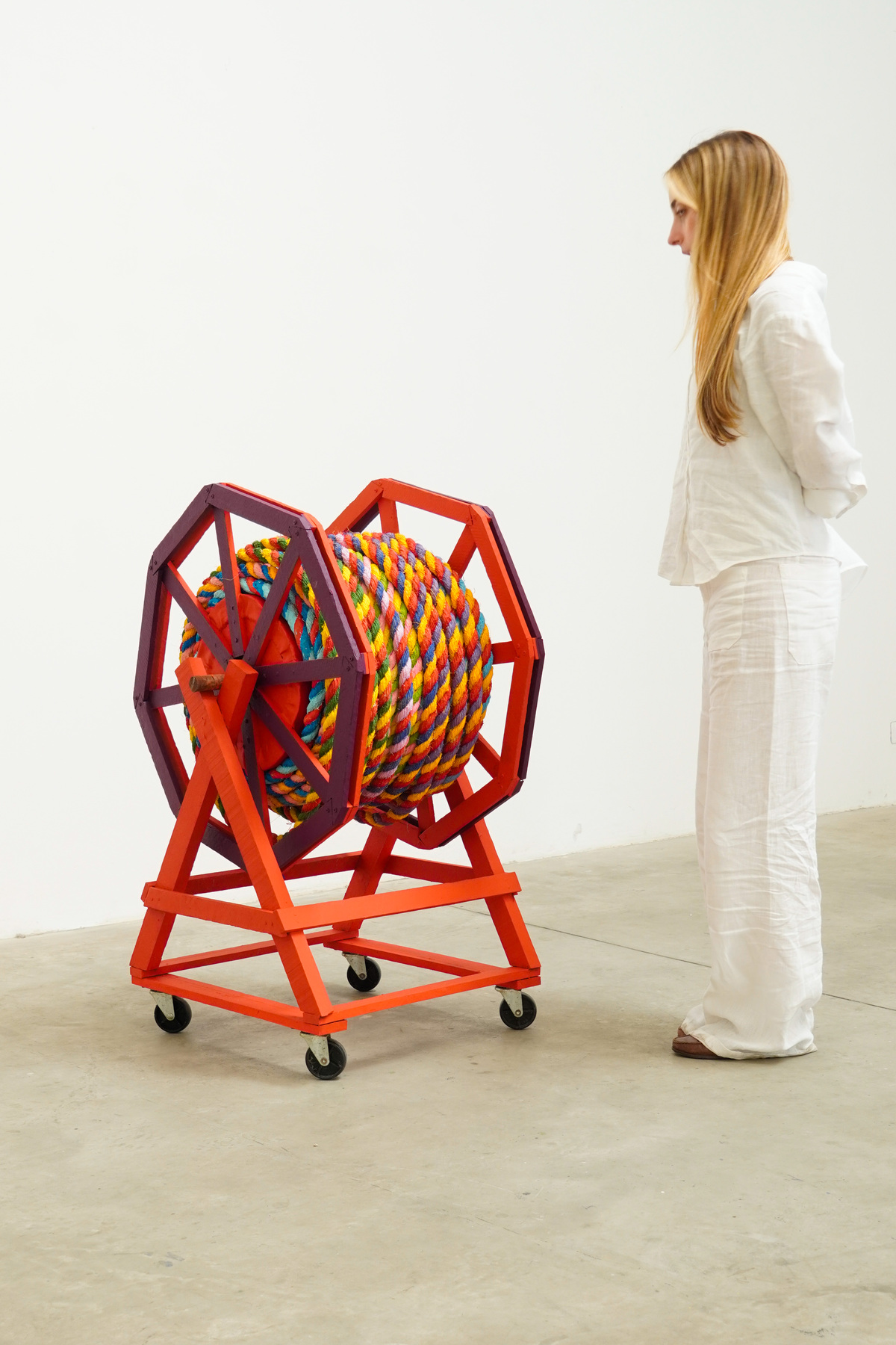 Nessa dimensão das tramas e das fibras, ressoa uma reflexão em consonância com o pensamento de Dénètem Touam Bona e sua noção de sabedoria dos cipós — uma filosofia da ligação, do entrelaçamento, do conhecimento que cresce em espiral. Essa correspondência vibracional nos faz perceber que são as fibras, com sua flexibilidade, resistência e memória, que se expandem em direções imprevisíveis, tensionando o espaço e instaurando novas relações entre matéria e tempo. Mais do que suportes, elas atuam como infraestruturas de pensamento, linhas que articulam mundos, geografias e modos de saber.