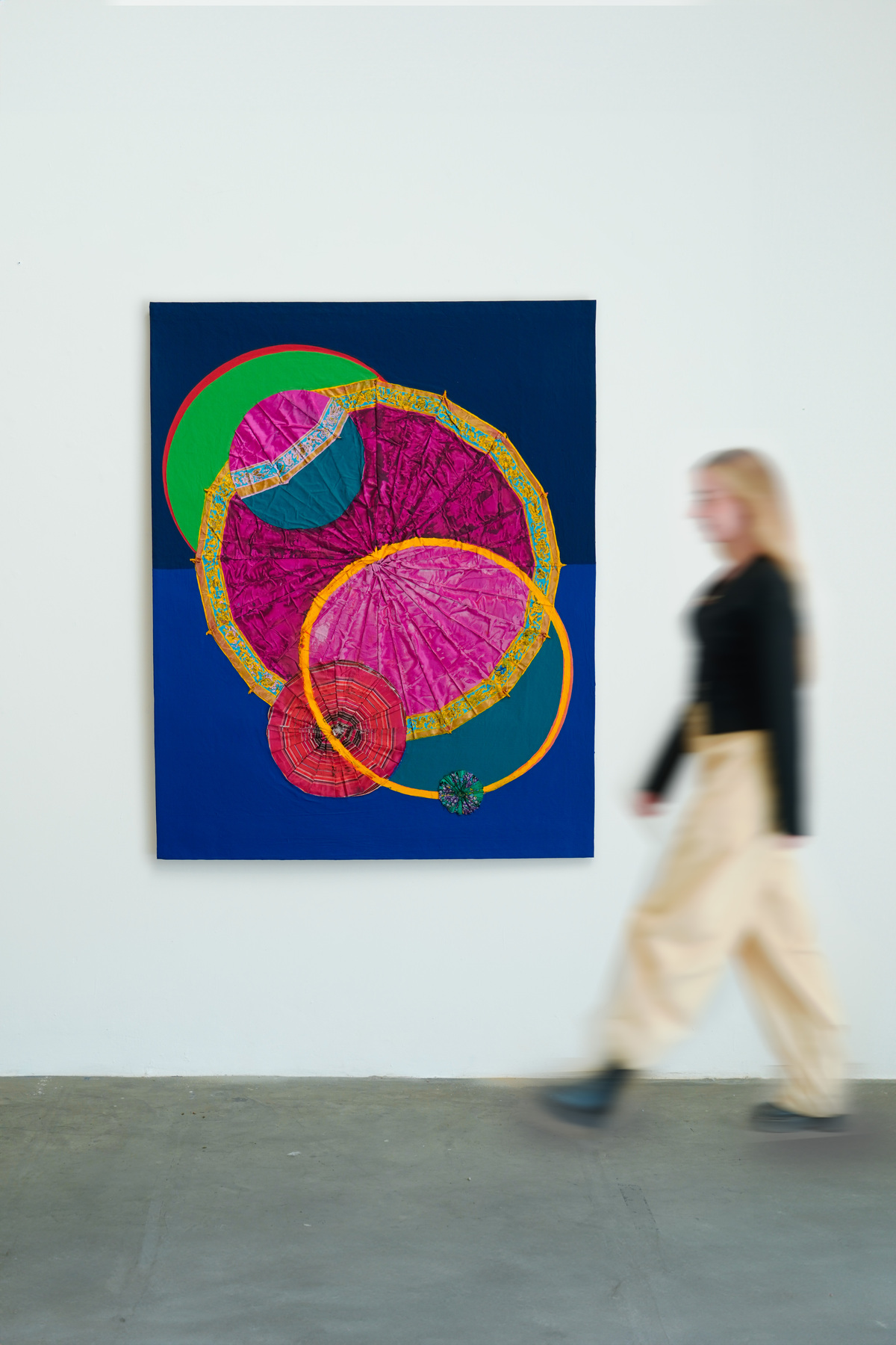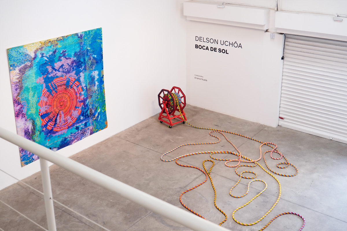 O processo de Delson Uchôa se desenvolve também a partir do contato com artistas e artesãos que produzem as fibras e artesanias presentes em suas obras. Ainda que nem sempre nomeadas, essas presenças compõem o campo sensível do trabalho. Há, em sua prática, um reconhecimento implícito das múltiplas mãos e saberes que sustentam a materialidade da pintura, uma atenção aos modos de fazer que o antecedem e o ultrapassam.