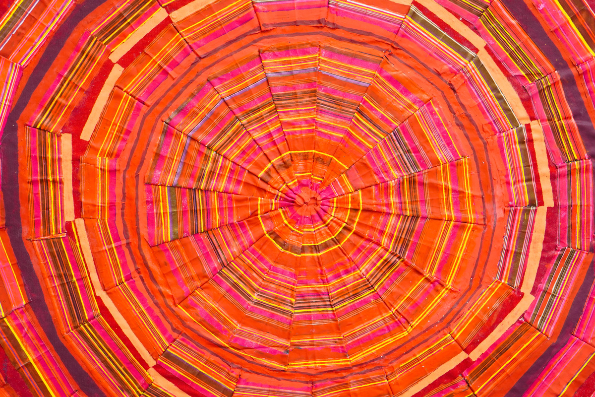 Essa relação com a luz se aproxima de uma heliófilia — o amor radical pelo sol e por seus efeitos, mas também por tudo o que cresce sob sua influência. A pintura de Uchôa parece possuir uma consciência heliotrópica, uma inteligência compartilhada entre seres, plantas, minerais e pessoas. A sabedoria das fibras, dos trançados e das matérias vegetais que compõem suas obras manifesta essa escuta ampliada, uma escuta que inclui o território como agente e não como cenário. O piripiri, o ouricuri, a carnaúba e outras fibras regionais são corpos pensantes, dotados de memória e plasticidade, que participam ativamente da produção das formas. A obra de Delson é, portanto, um sistema coletivo em que o gesto do artista se entrelaça ao trabalho artesanal, à ecologia e às inteligências vegetais que moldam a cor, o relevo e o ritmo da pintura.