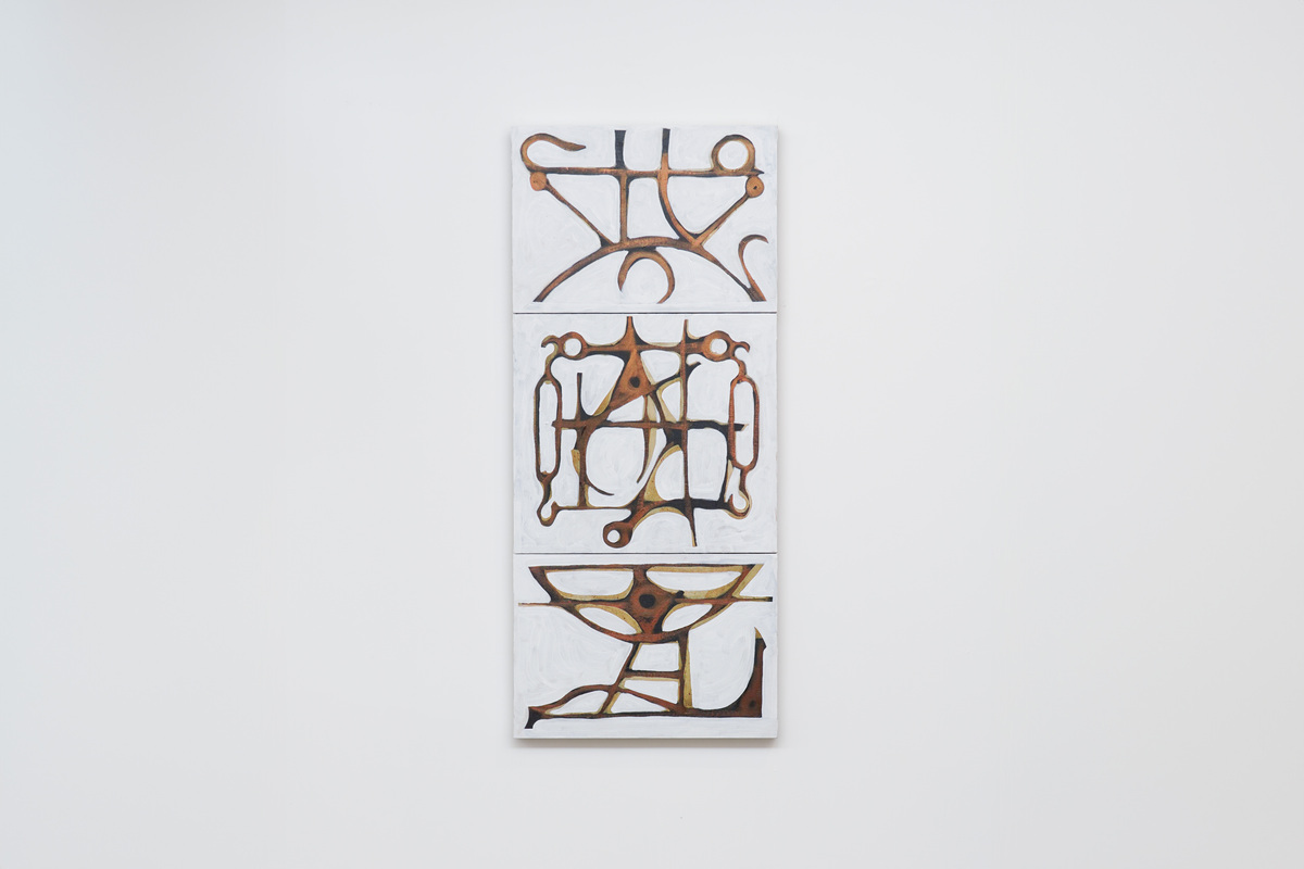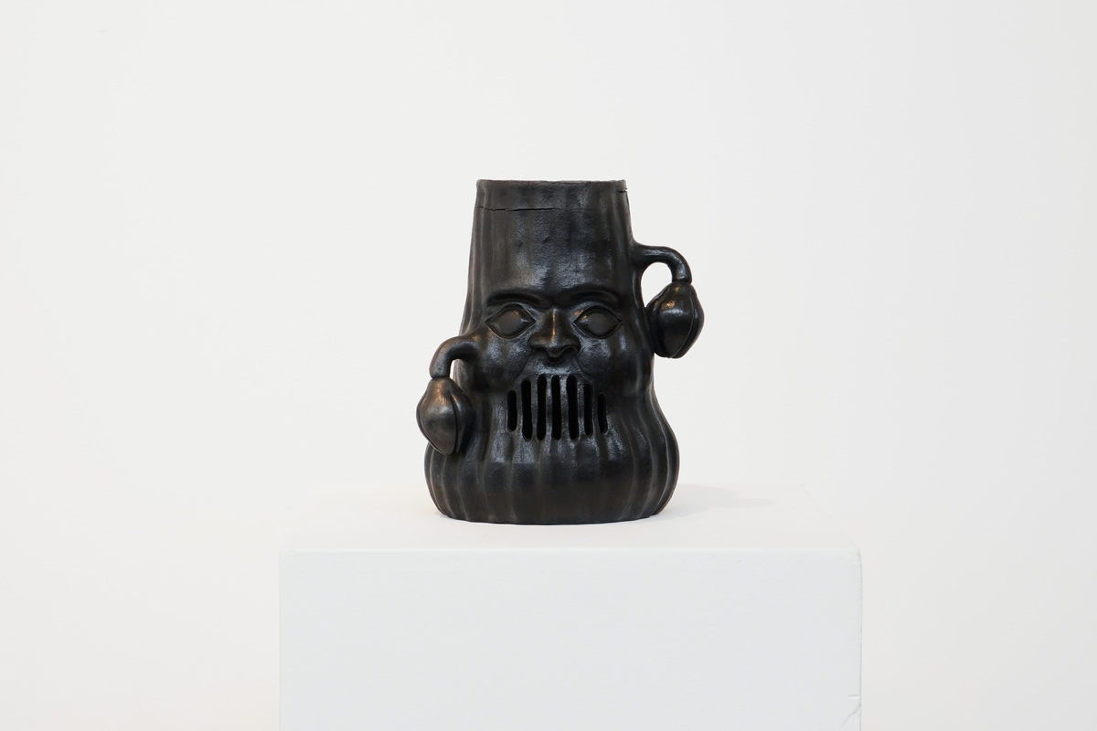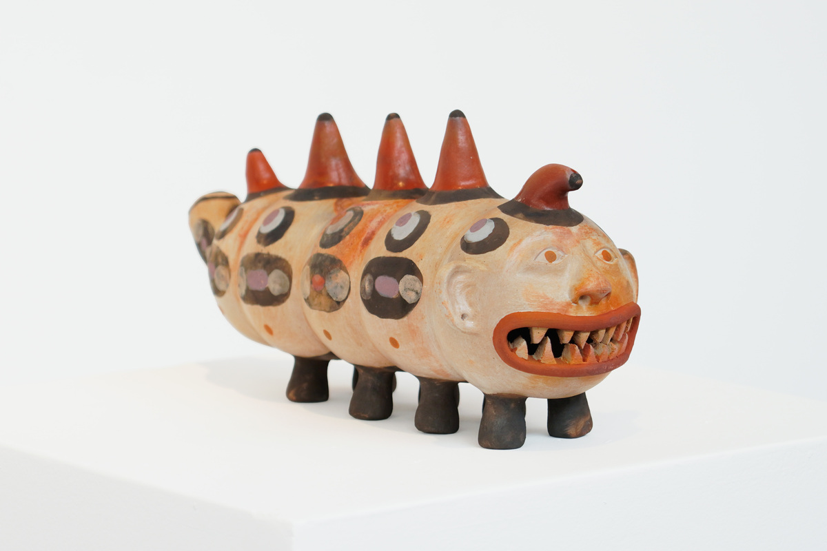 Ou, se possivelmente vislumbrado, seria este lugar o território profícuo para a vida das criaturas de Oboé, aqui apresentadas em conversa ativa com as figuras de Nascimento. Adensando a dimensão arqueológica-natural dos trabalhos aqui reuniudos, as esculturas de Oboé parecem nos lembrar de artefatos históricos tais como vestígios mineirais do mundo animnal que, se vistas em conjunto com suas pinturas de Nascimento, nos convidam a adentrar a caverna (e o abismo!) por nós sugerido.