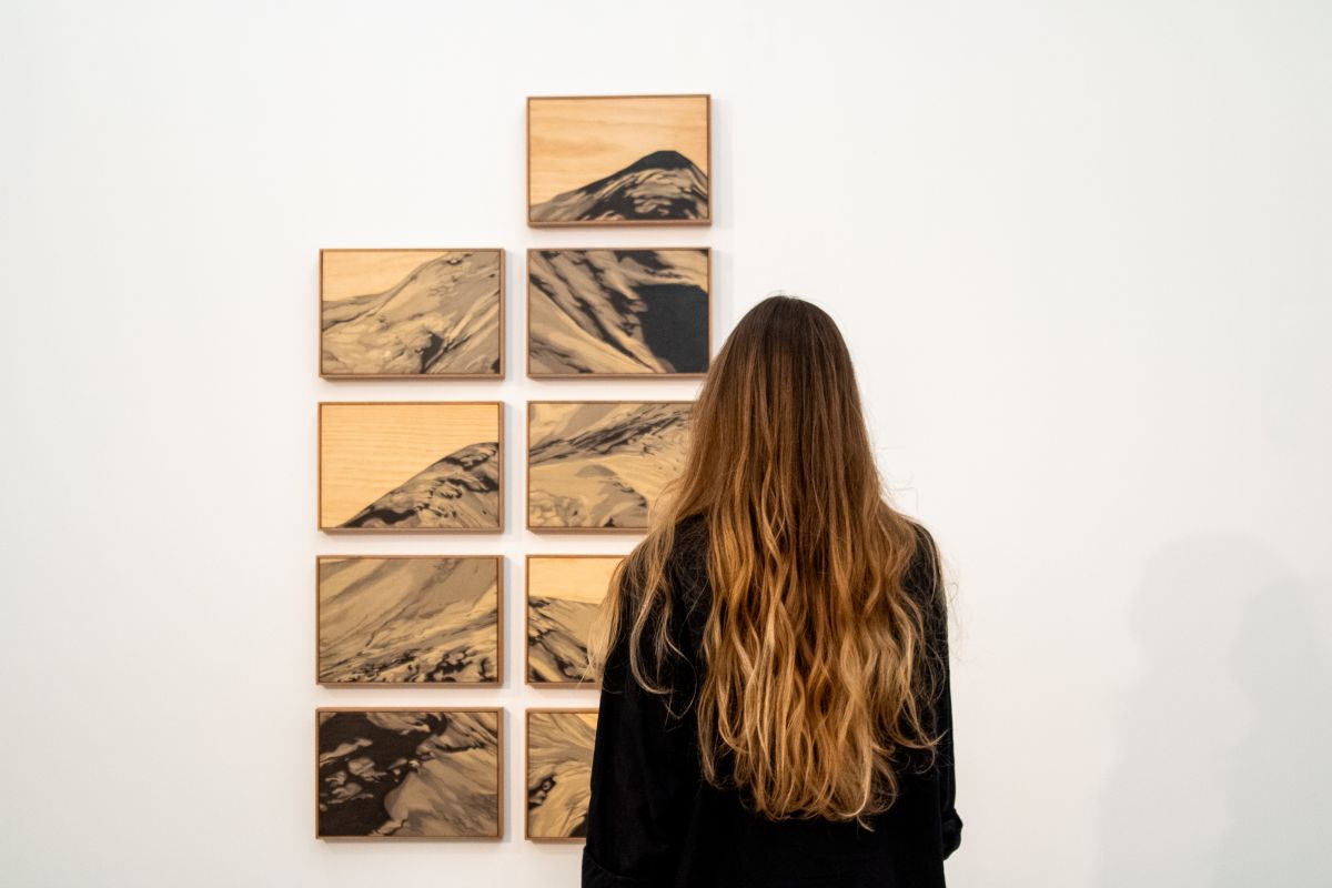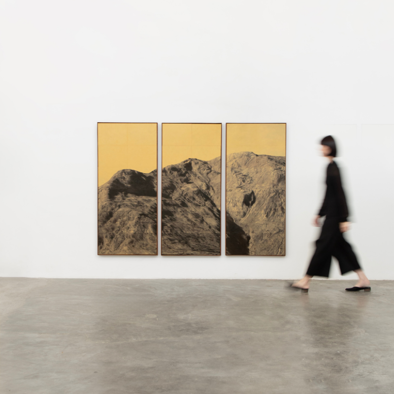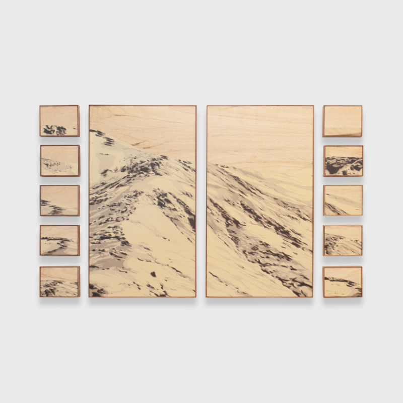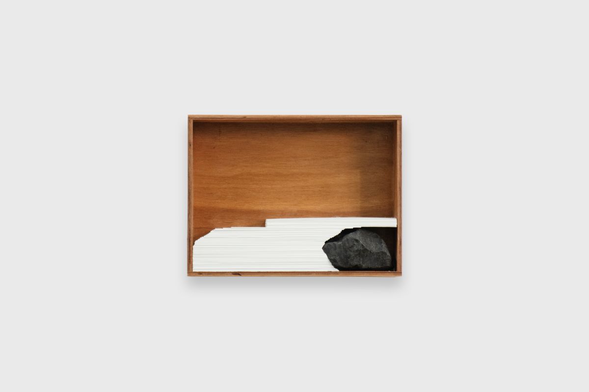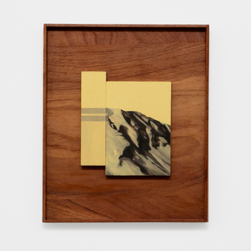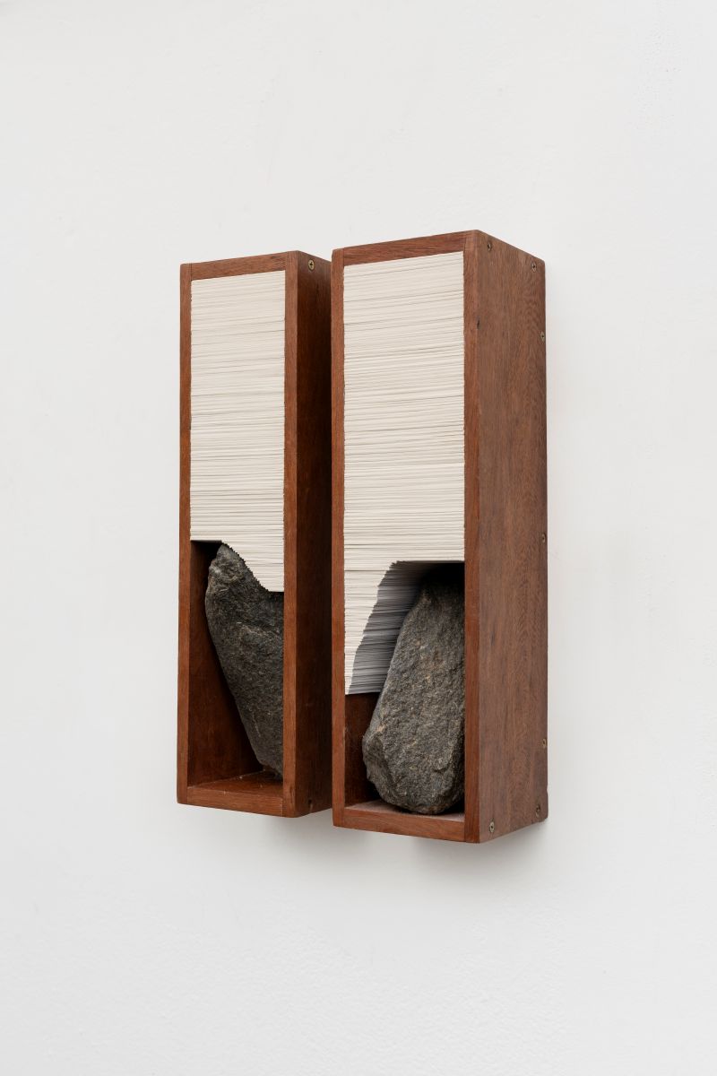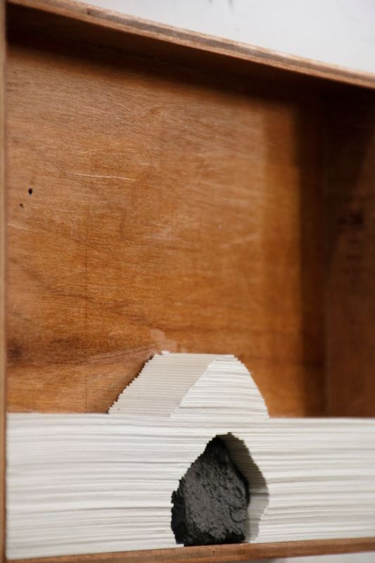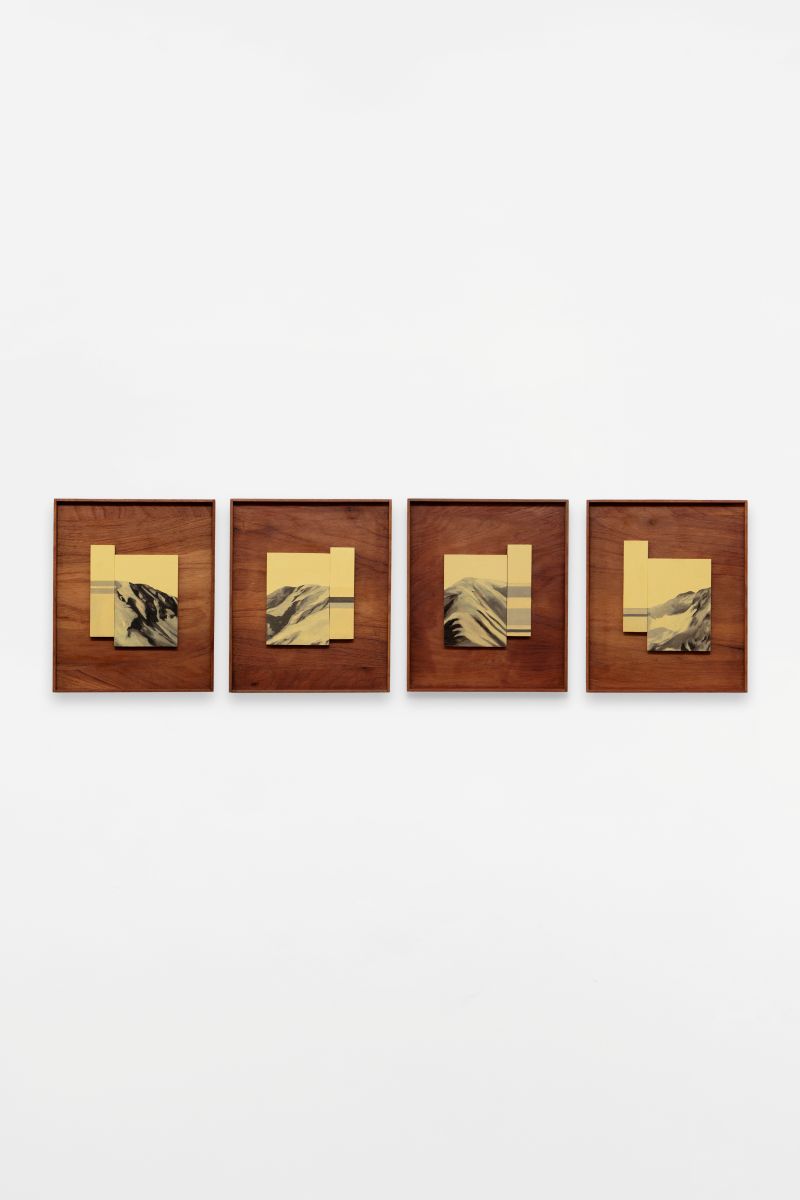 Aline Moreno (Campinas, 1992) with her artwork deals with the concept of landscape as a translation and interpretation of nature through language, dialoguing with the history of its representation and, inevitably, with the tradition of painting. She produces on scales ranging from small objects to paintings close to the human scale, exploring materials such as wood, paper, stone, plaster, collages and paintings.
