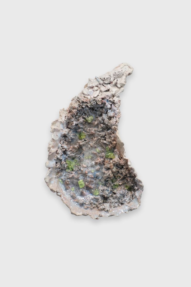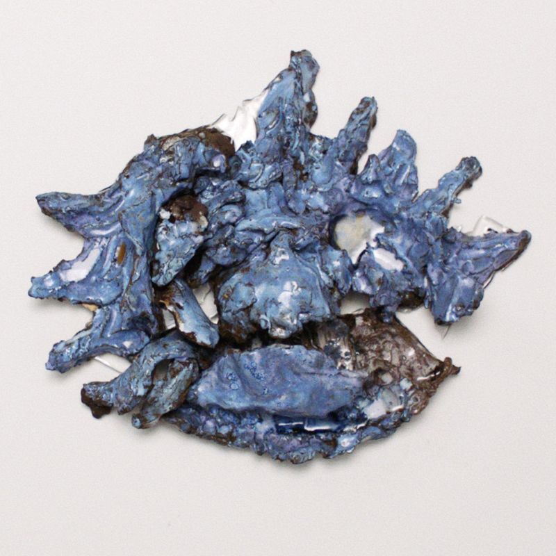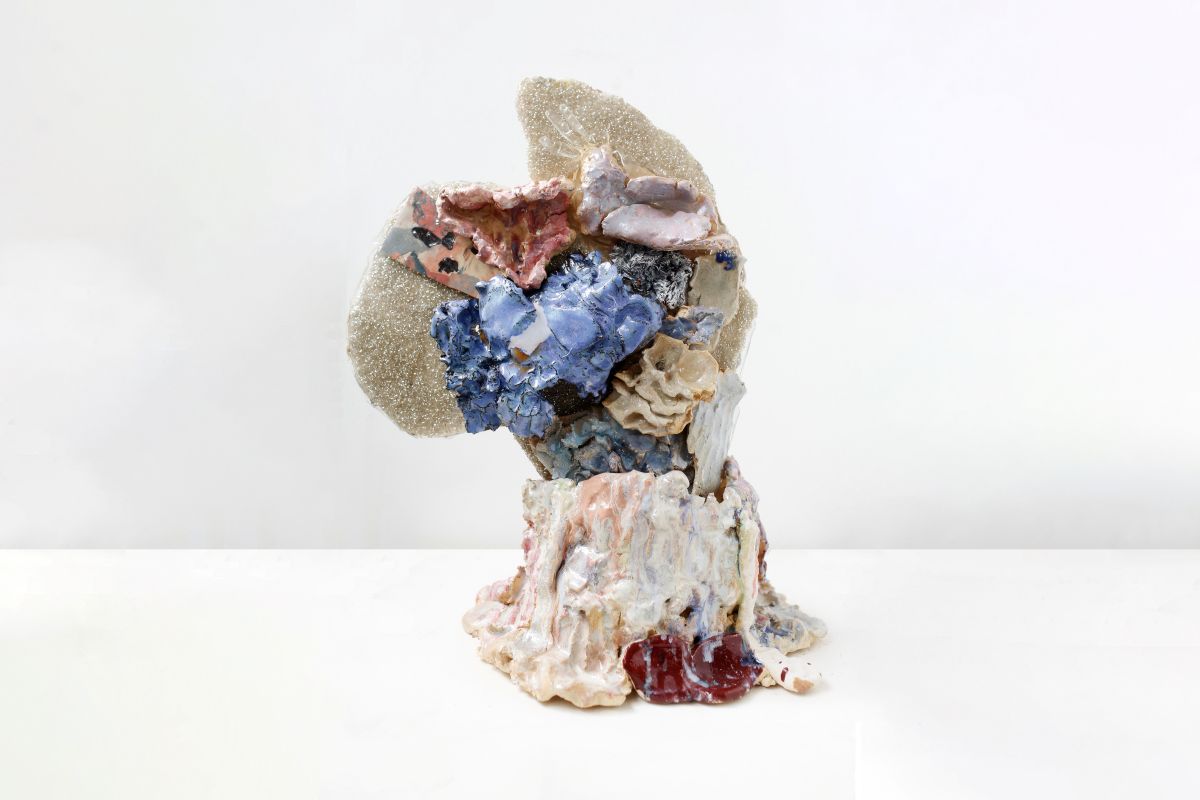 Suas esculturas se apresentam como artefatos cerimoniais, ruínas de altares, fragmentos de jardins suspensos. Nelas, a beleza controlada convive com o colapso iminente: formas que cintilam, mas ameaçam derreter.